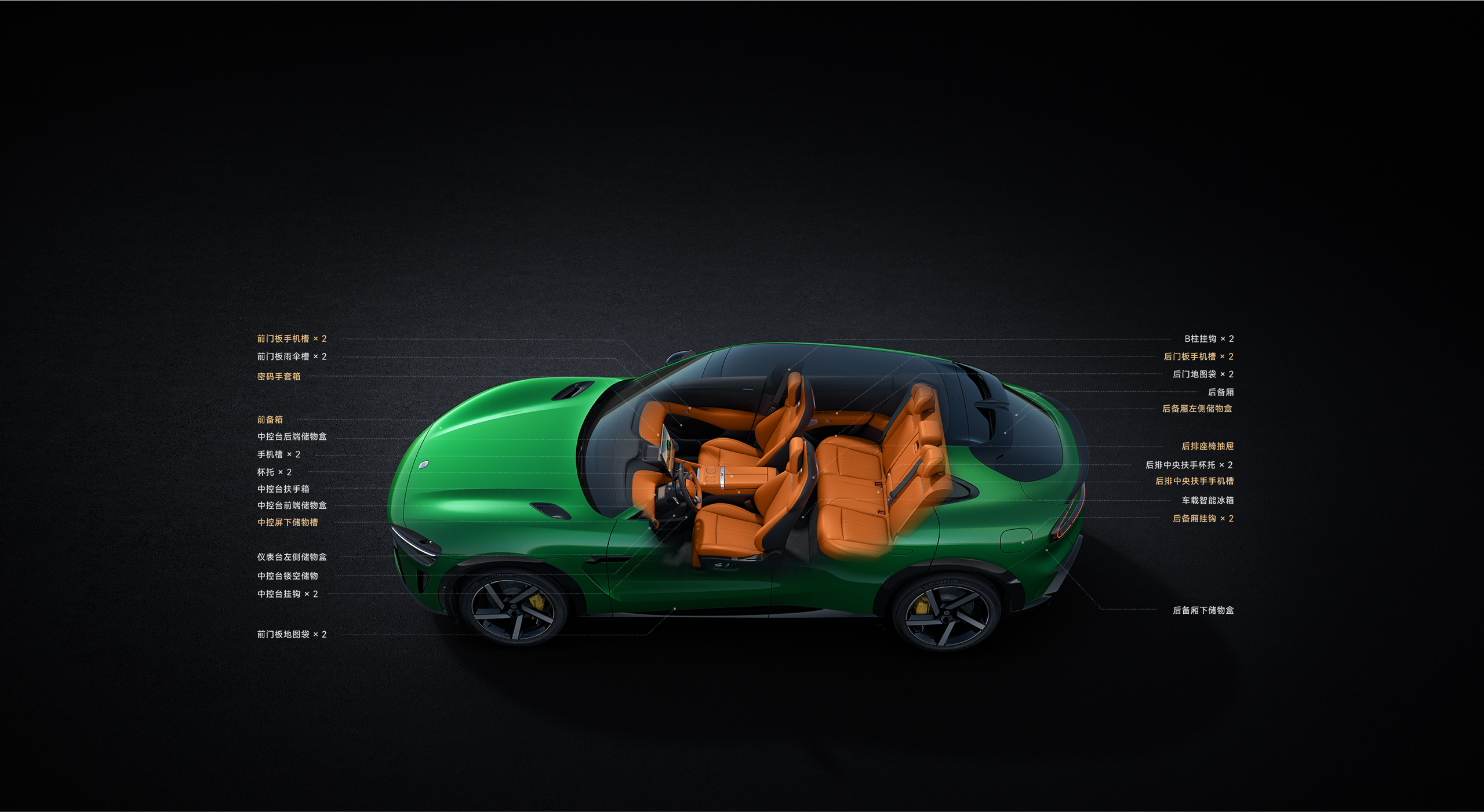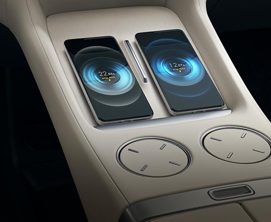 Conveniently placed in the front row, with a dual-position layout and hidden air vents. Supports high-power 80W fast charging—simply place your phone to charge instantly.