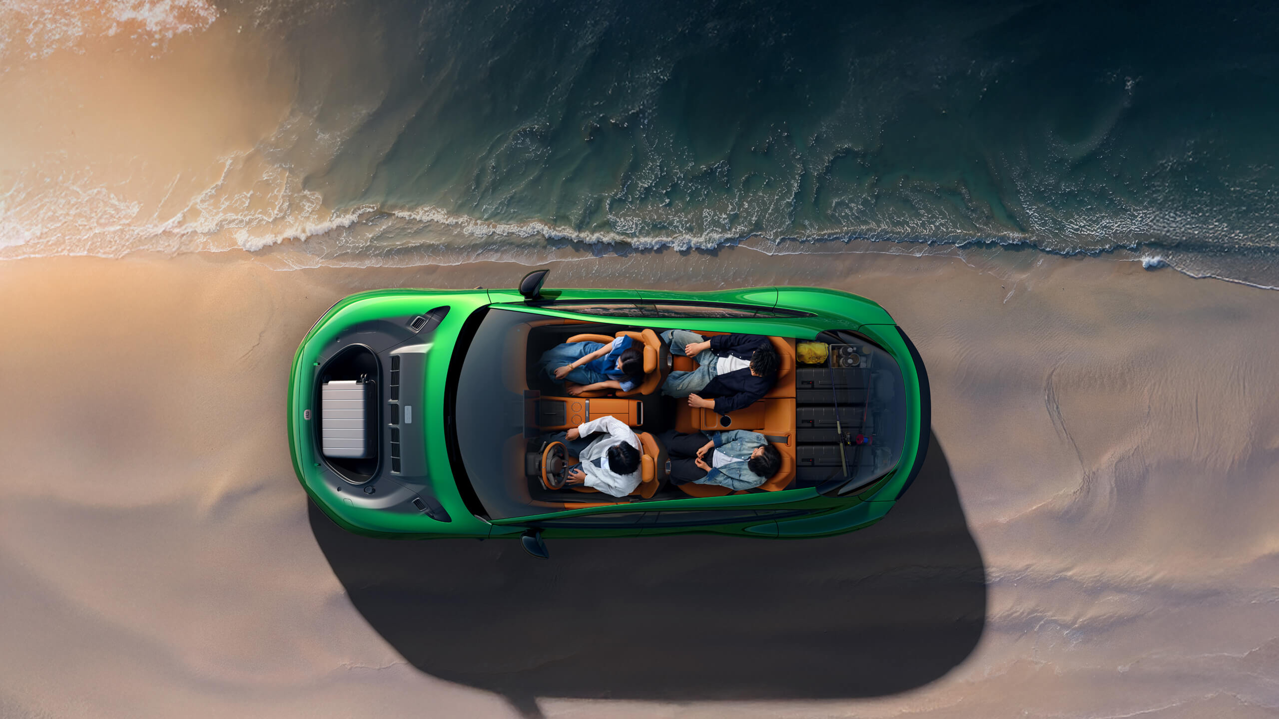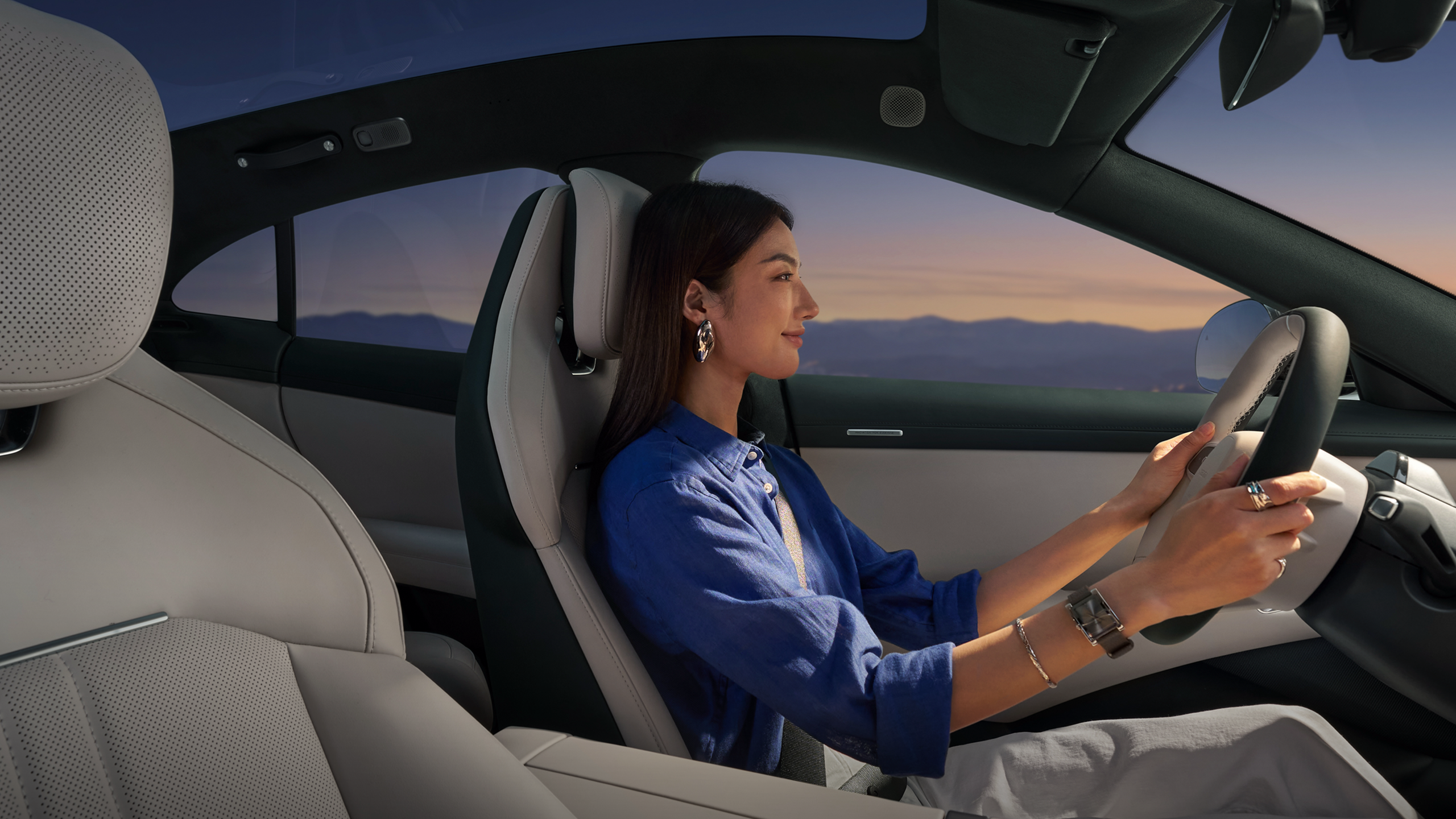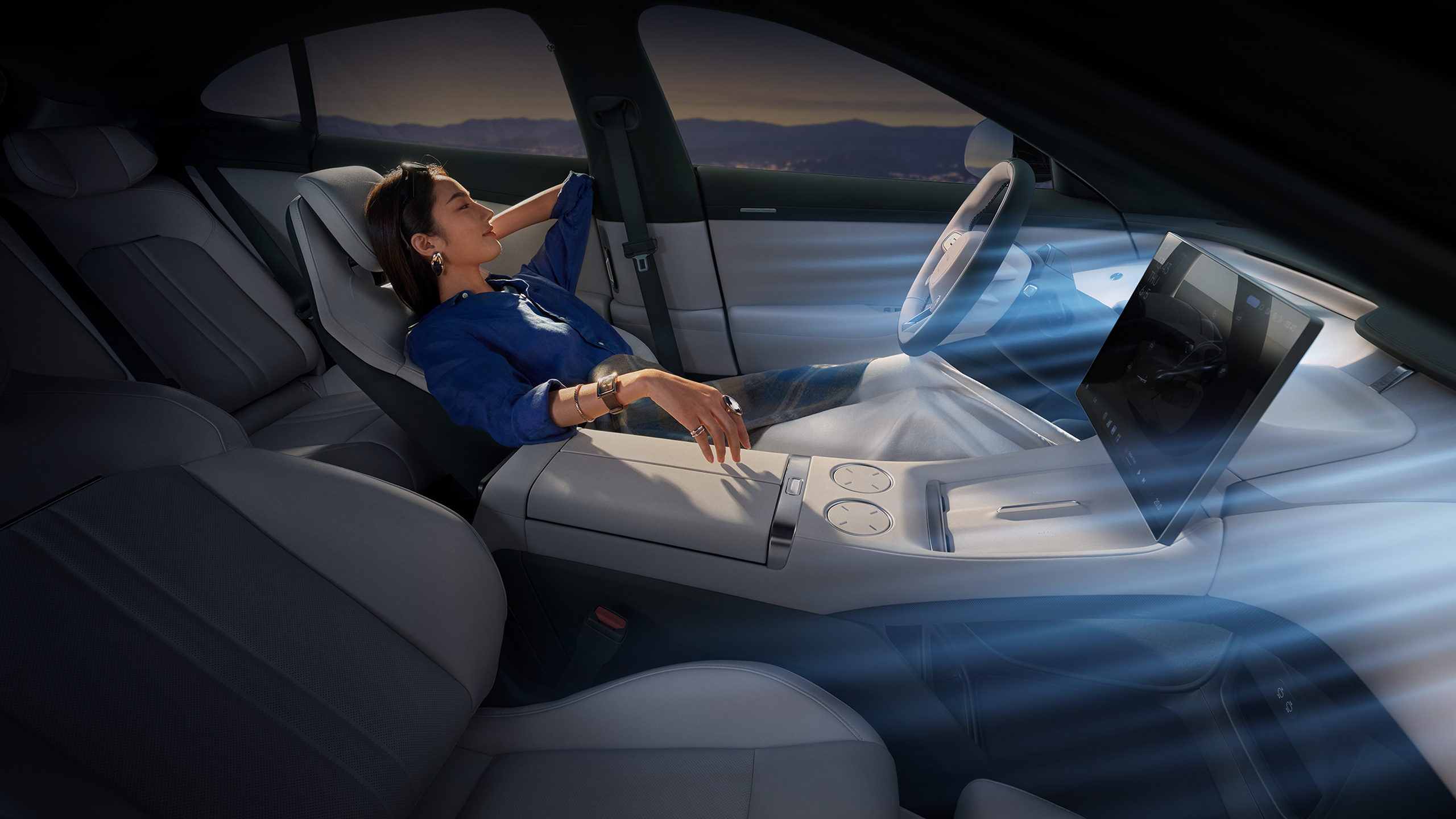 Hidden design streamlines the body lines, effectively reducing drag. Handles automatically extend when approached, with ambient lighting; auto-closing adds a refined sense of ceremony.