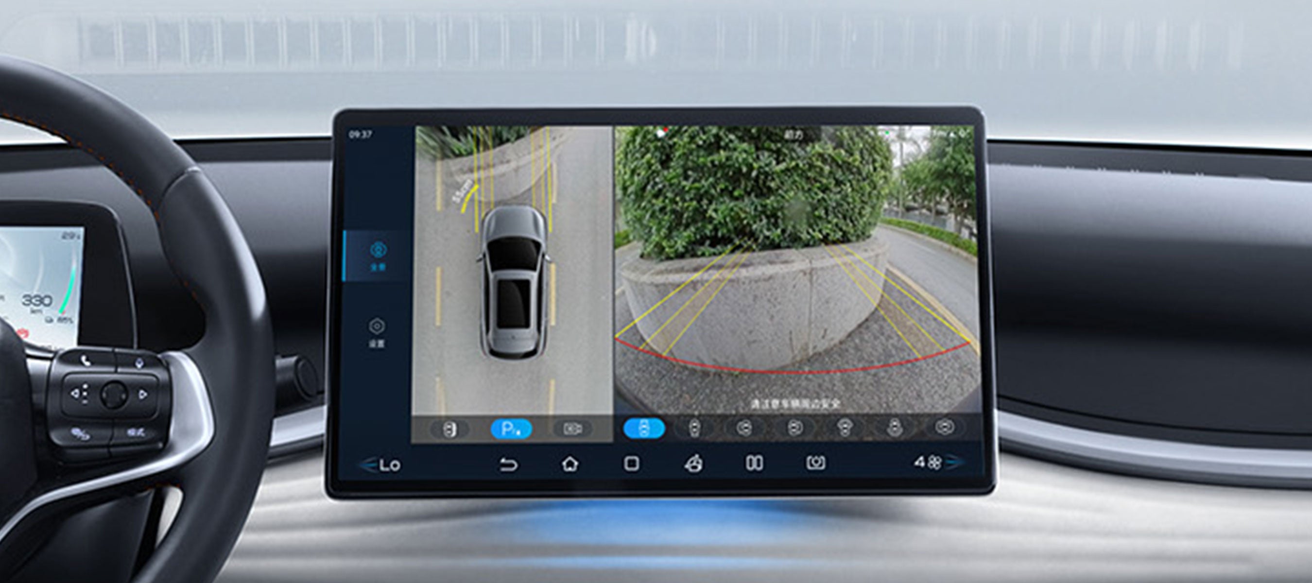 Provides a bird’s-eye view for clear observation and distance judgment between the vehicle and obstacles, enabling faster and safer navigation through narrow passages.