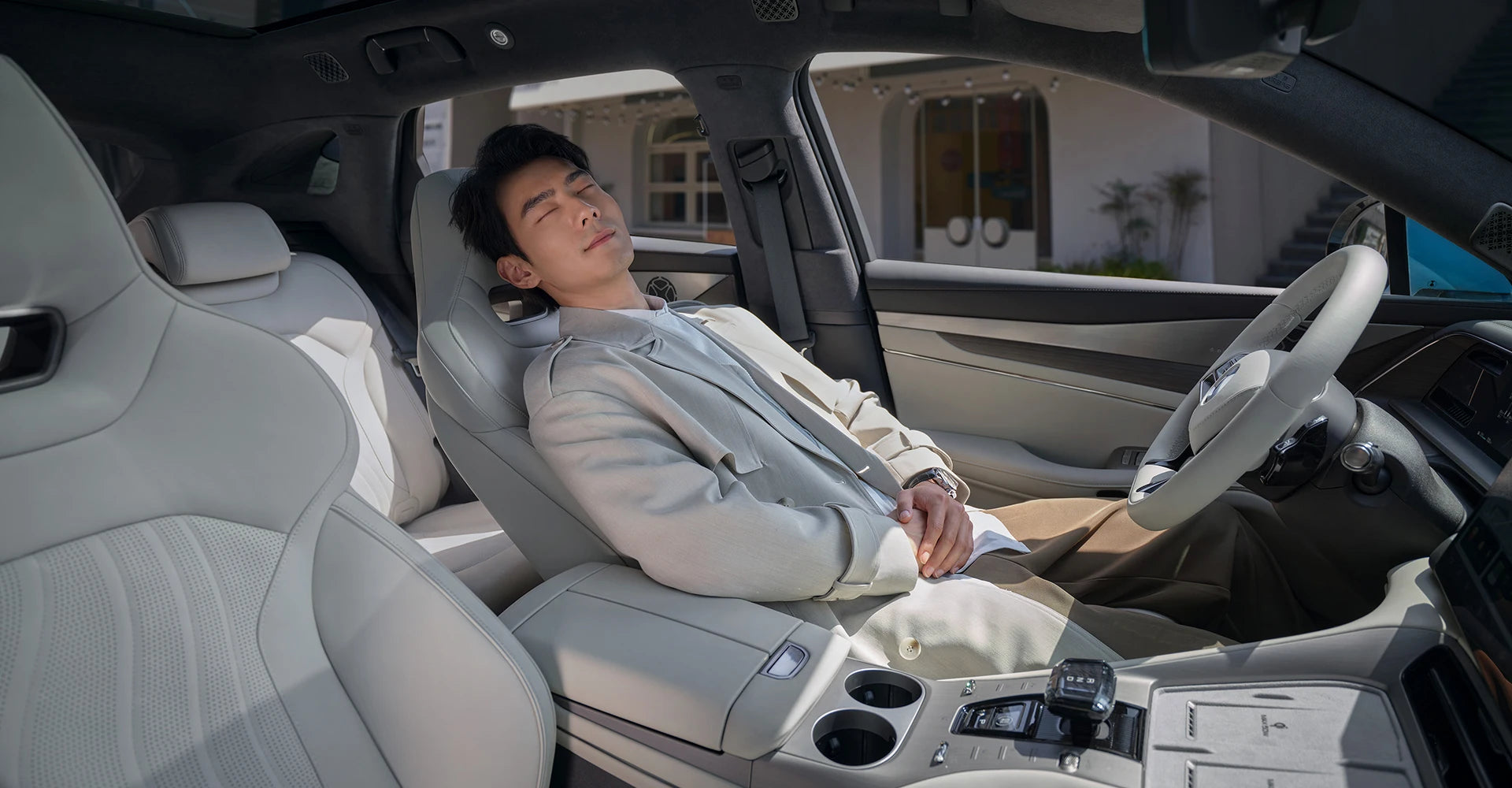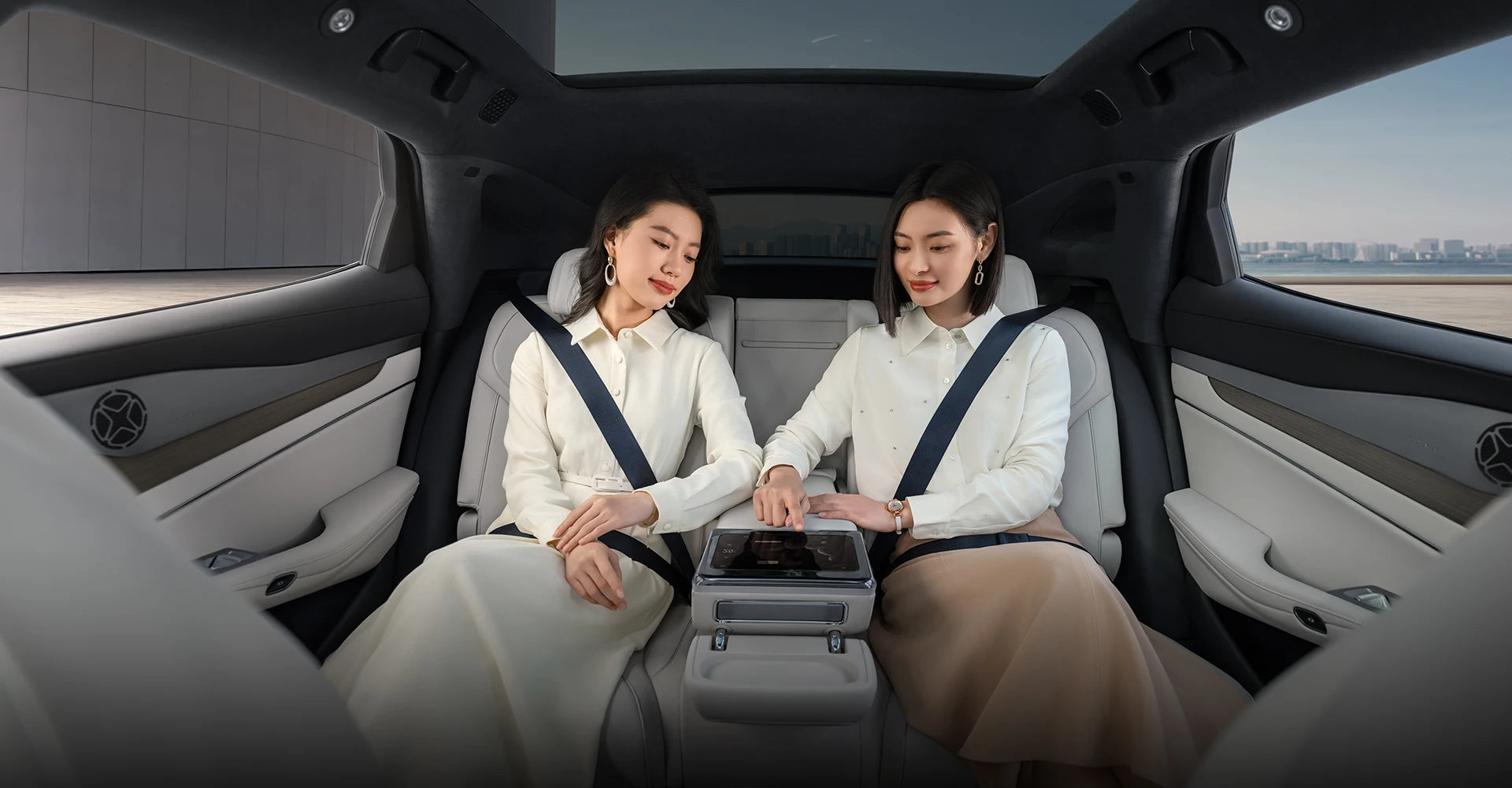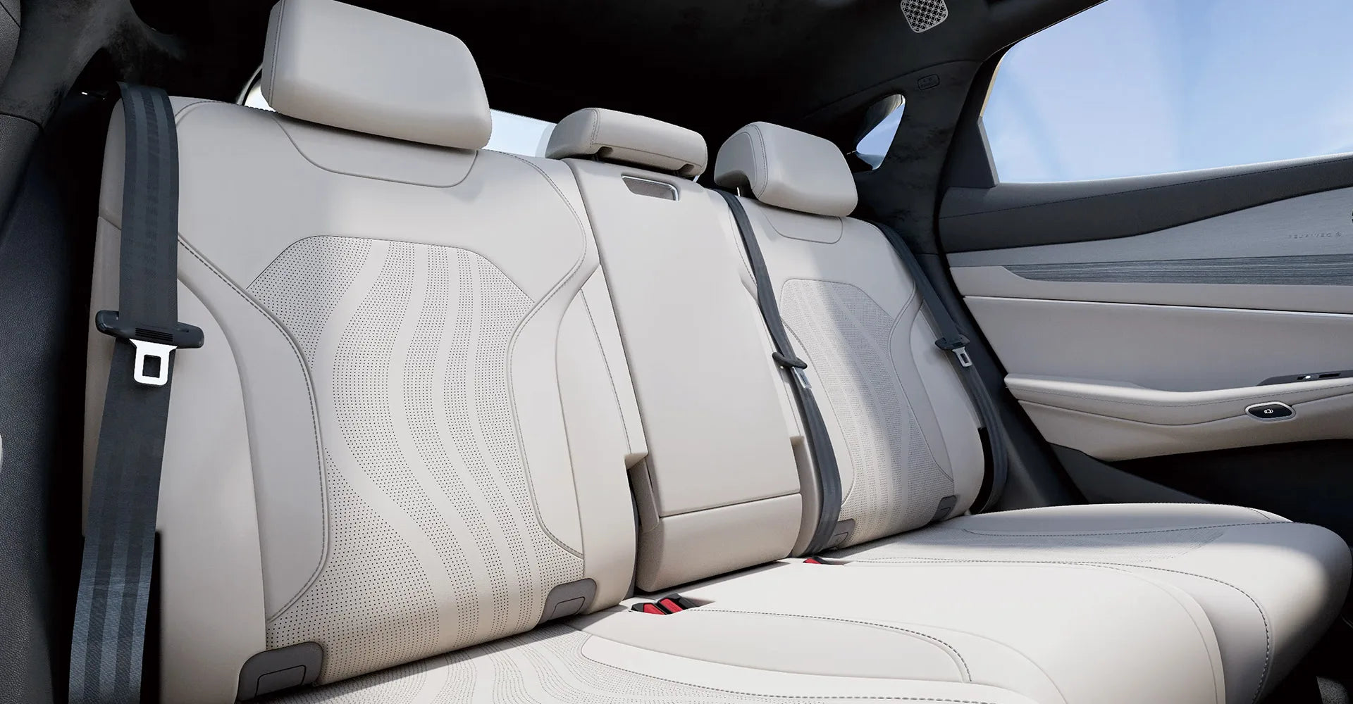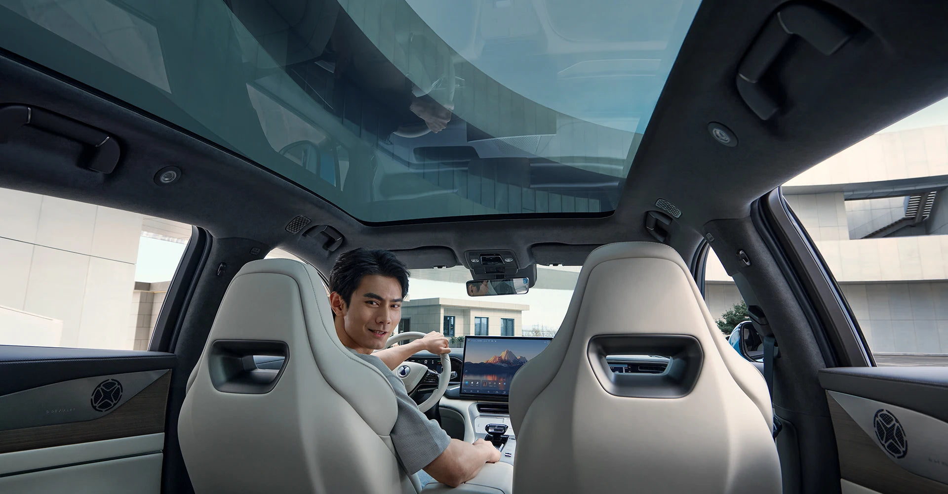 A 1.93 m² panoramic roof that blocks 99% of UV rays, filling the cabin with light while keeping it cool.